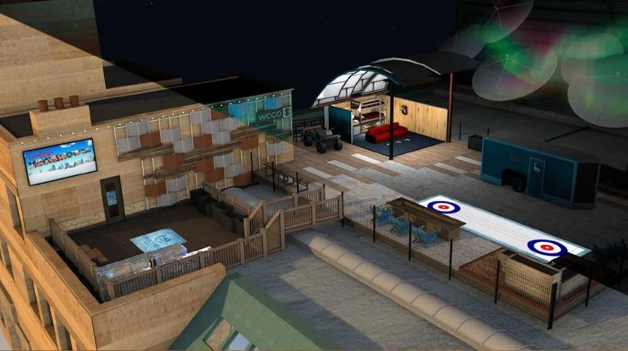 For Super Bowl LII, I served as Design Director for CBS and WCCO Minneapolis to create The Minnecentric Experience, a fully immersive charity event that transformed a standard conference room and rooftop into the hottest ticket in town. Embracing the brutal -14°F Minnesota winter, the concept centered on bringing the authentic "Bold North" to life for visiting VIPs and celebrities. Instead of shying away from the extreme cold, we leaned into it, hosting a high-altitude ice-fishing charity event right on the downtown rooftop.