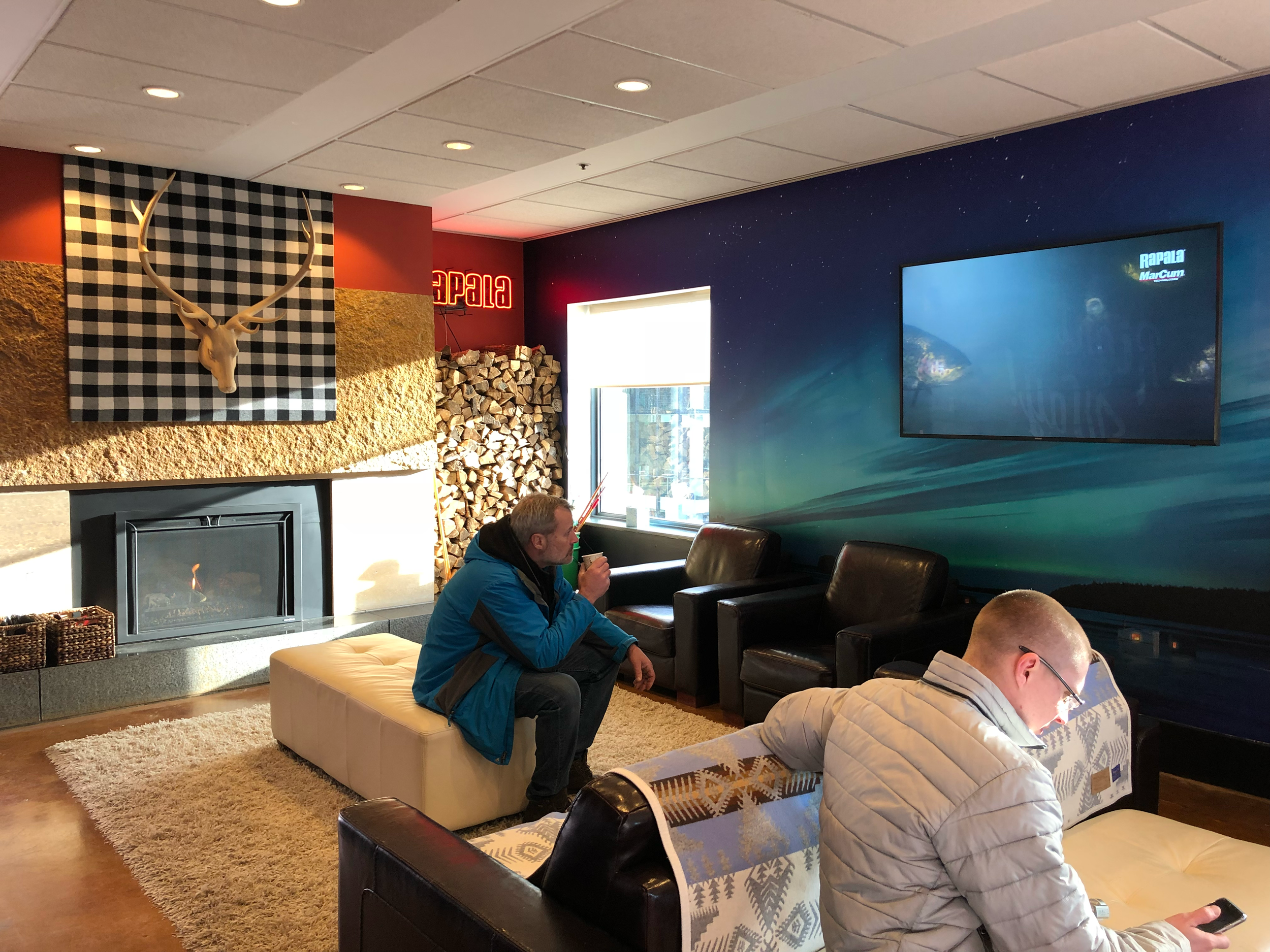 Every detail was designed to pull guests into the experience, supported by comprehensive environmental wraps that overhauled the entire interior and exterior footprint. Because attendees would be stepping into sub-zero temperatures to watch the celebrity ice fishing, I designed custom winter apparel for them to slip on, turning a functional necessity into a cohesive brand touchpoint. Combined with strategically integrated photo booths, the event was a highly tactile, multi-sensory environment that perfectly captured the spirit of the host city and delivered an unforgettable Super Bowl experience.